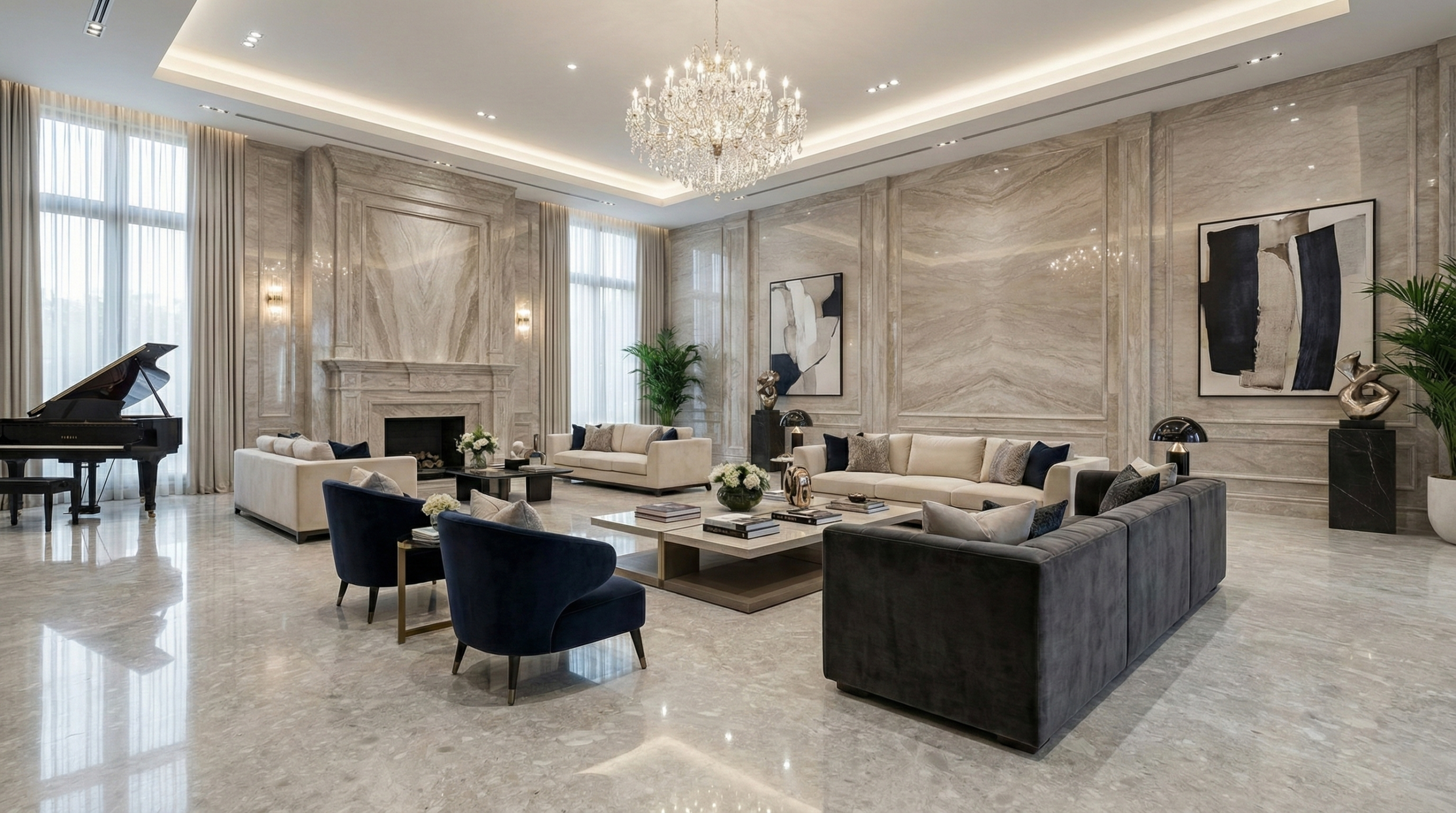 Bvlgari Grey marble showcases deep grey shades highlighted with fluid white veining that adds movement and sophistication. Perfect for statement walls, countertops, and flooring, this marble delivers a bold yet elegant presence. Its polished surface reflects light beautifully. Strong and visually striking, Bvlgari Grey suits luxury interiors seeking modern refinement and lasting architectural character.